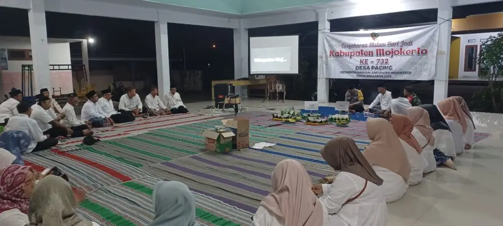 Desa Pacing, Kecamatan Bangsal, Kabupaten Mojokerto, turut ambil bagian dalam perayaan Hari Jadi Kabupaten Mojokerto yang ke-732 dengan menggelar seremonial sederhana namun penuh makna pada Kamis, 8 Mei 2025. Acara dipusatkan di Pendopo Balai Desa Pacing dan dihadiri oleh berbagai unsur pemerintahan desa dan masyarakat setempat meliputi Kepala Desa Pacing beserta perangkat desa, anggota BPD, LPM,